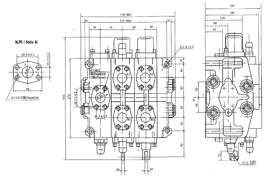 DC32负载反馈多路换向阀外形图