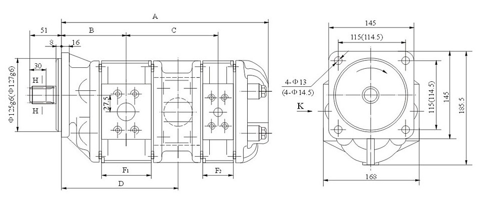 CBG-Fa2/2外形安装连接尺寸